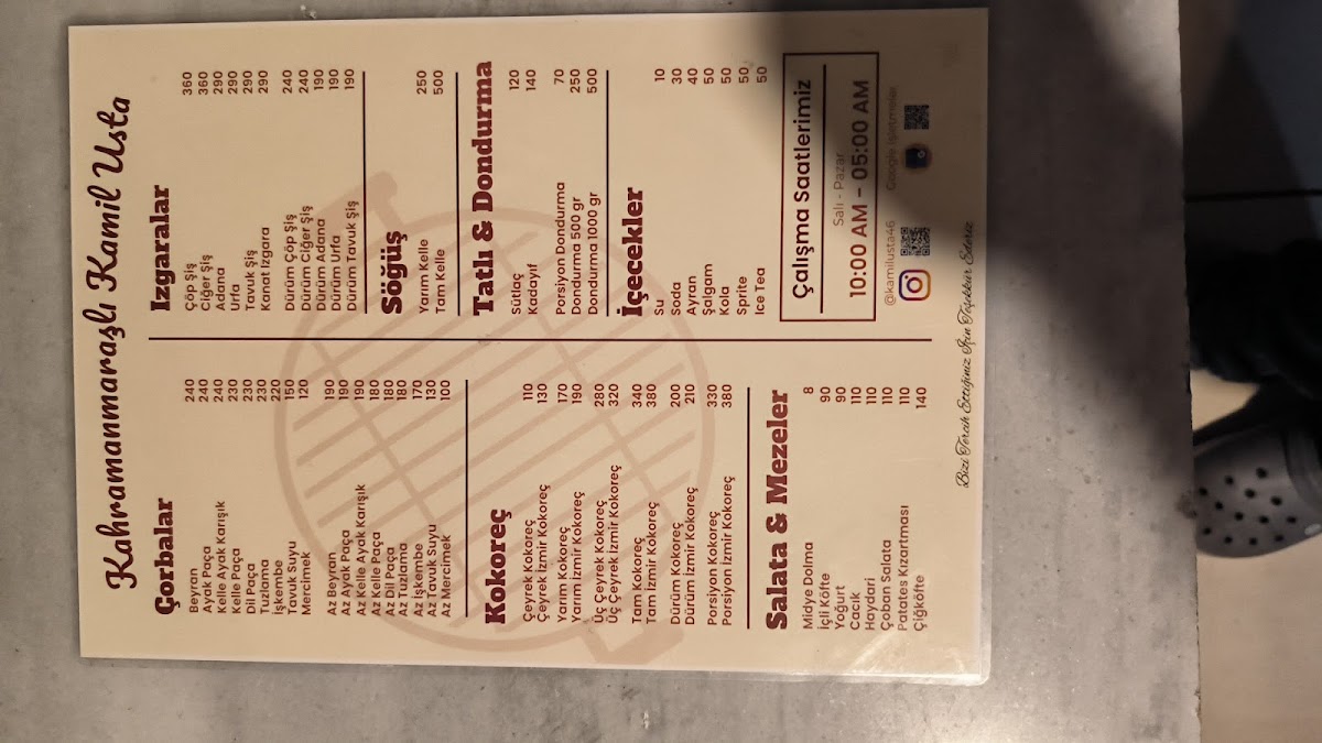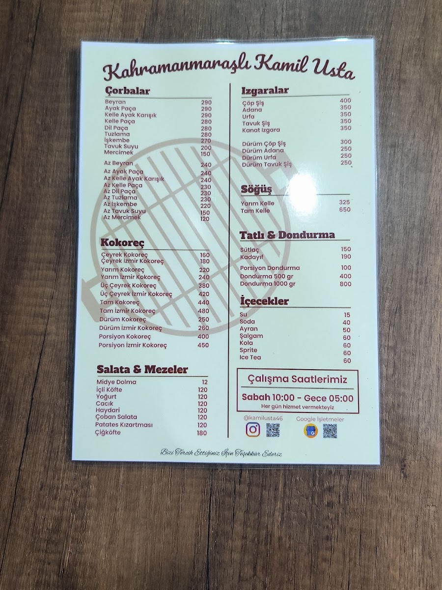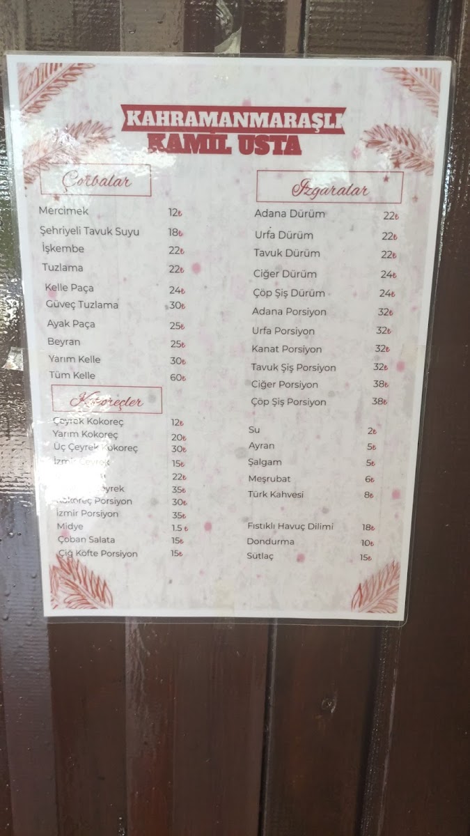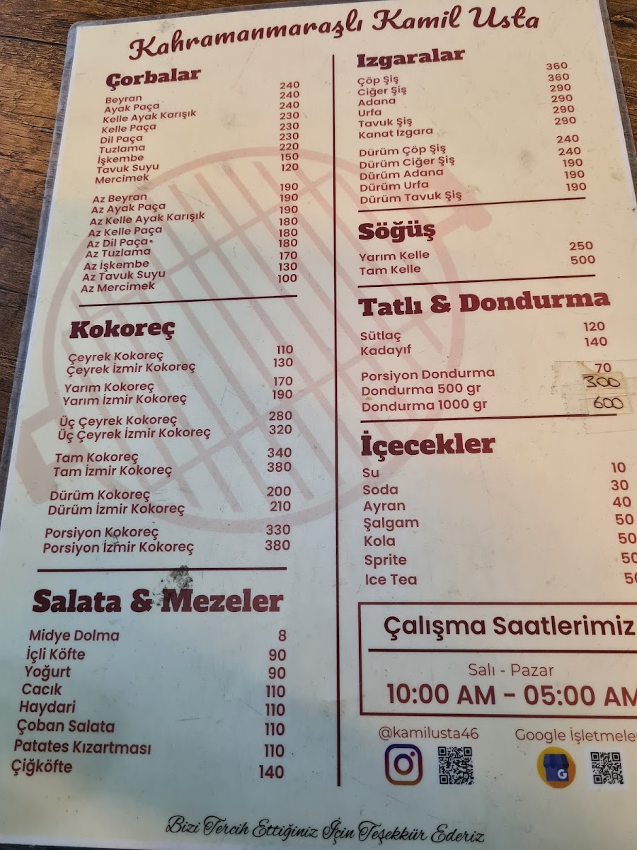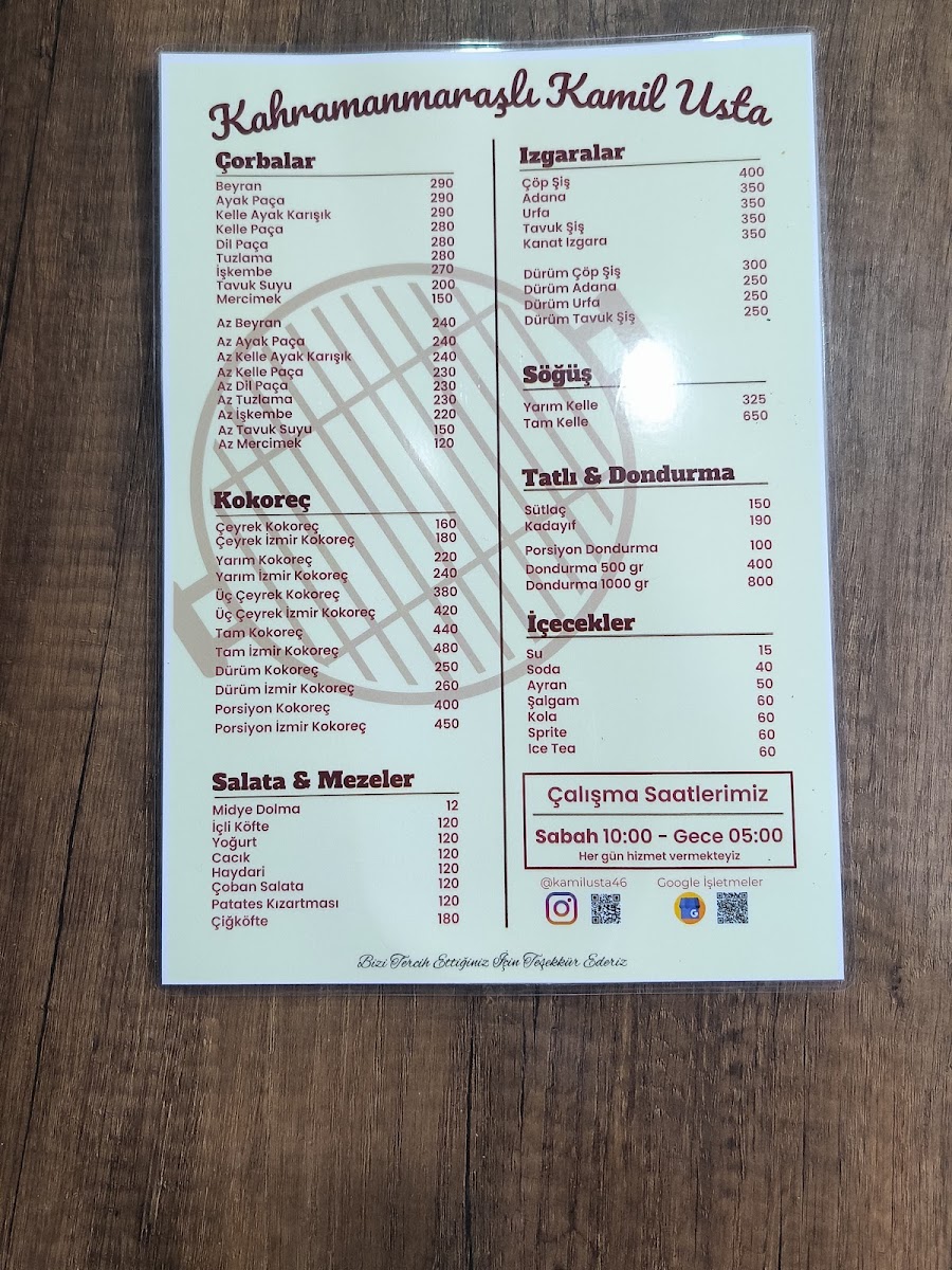 Welcome to Kahramanmaraslı Kamil Usta, a culinary gem located in Sahrayı Cedit, Istanbul. This restaurant specializes in traditional Turkish delicacies that are sure to delight your palate. Their menu features a tantalizing array of soups, including the iconic Kelle Paça and Beyran, both priced at TRY 210.00, perfect for warming your soul on a chilly day.